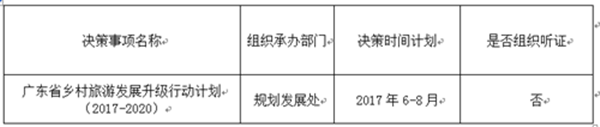 广东省旅游局2017年拟作出重大行政决策事项目录
