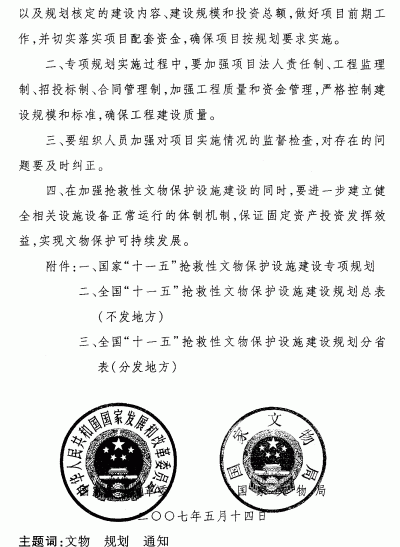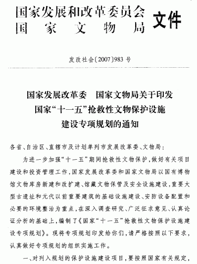国家发展改革委 国家文物局关于印发国家“十一五”抢救性文物保护设施建设专项规划的通知