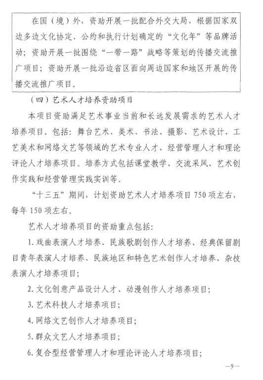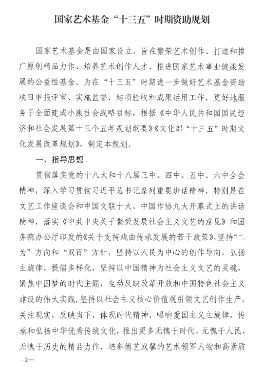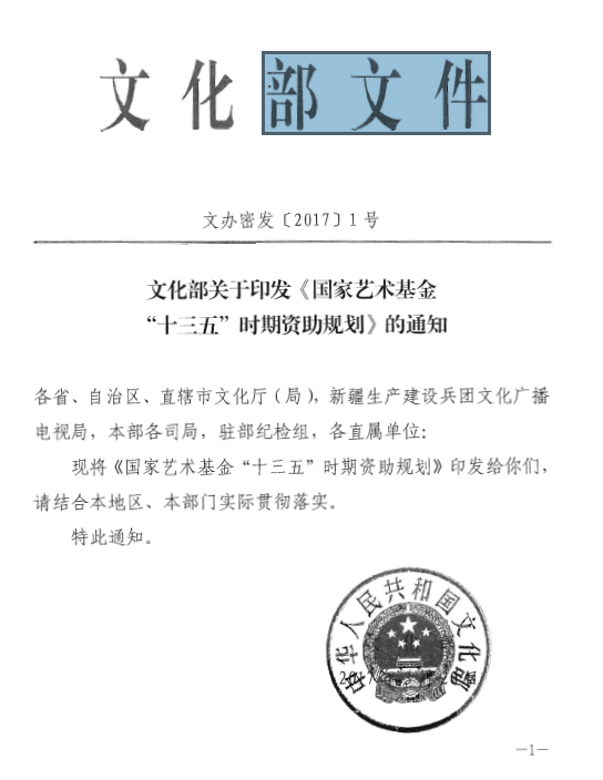 文化部关于印发《国家艺术基金“十三五”时期资助规划》的通知