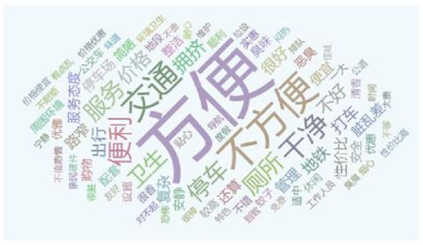 【交通拥堵】评价主要针对干线交通和目的地附近交通,总体评价较好,节假日较差,评价词集中在便捷、方便、不堵、路越来越方便、节假日别添堵等;