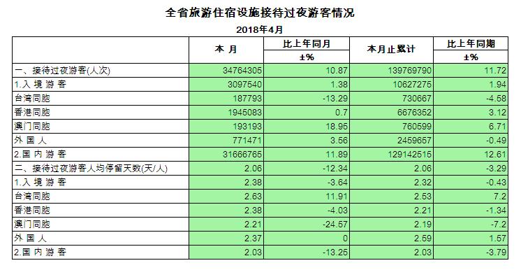 全省旅游住宿设施接待过夜游客情况(2018年4月)