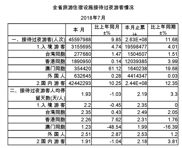 全省旅游住宿设施接待过夜游客情况(2018年7月)