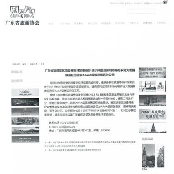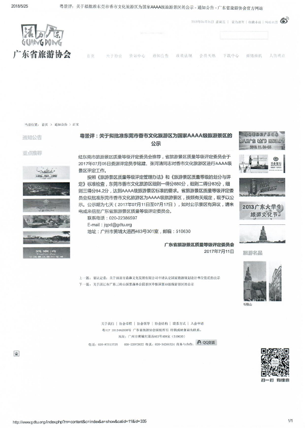 广东省旅游景区质量等级评定委员会关于 拟批准佛山市梦里水乡景区为国家AAAA级旅游景区的公示