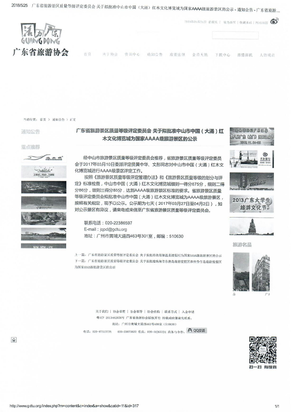 关于中山华艺广场申报国家4A级旅游景区的公示