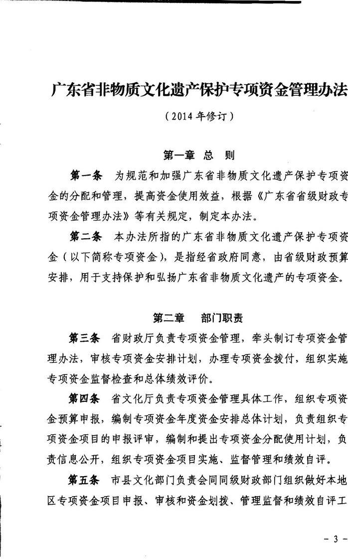 关于印发《广东省非物质文化遗产保护专项资金管理办法﹙2014年修订﹚》的通知