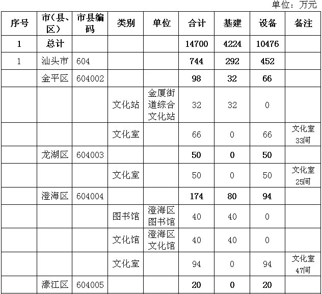 2014年第一批全省经济欠发达地区基层公共文化服务设施建设专项补助资金安排明细表