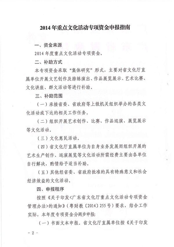 关于印发《2014年重点文化活动专项经费申报指南》的通知