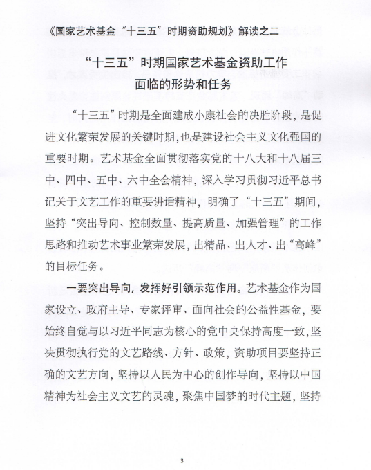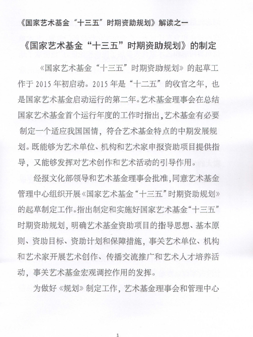 《国家艺术基金“十三五”时期资助规划》解读
