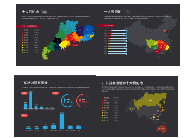 集旅游、观光、休闲、度假为一体的新型的主题公园是广东最鲜明的旅游形象符号。广州长隆旅游度假区节日期间共接待游客53.87万人次,同比增加22.13 %,门票收入12227.2万元,同比增长20.04%;珠海长隆国际海洋度假区特色新春演出节目贯穿整个春节前后,全球马戏表演艺术家为游客带来全球顶尖的马戏表演,共接待游客70万人次。