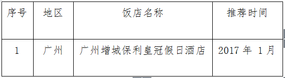 经饭店自愿申报、市级旅游星级饭店评定委员会推荐,在严格审查的基础上,广东省旅游星级饭店评定委员拟向全国旅游星级饭店评定委员提交广州增城保利皇冠假日酒店国家五星级酒店的评定申请。根据《<旅游饭店星级的划分与评定>(GB/T14308-2010)工作规程》,现公示如下: