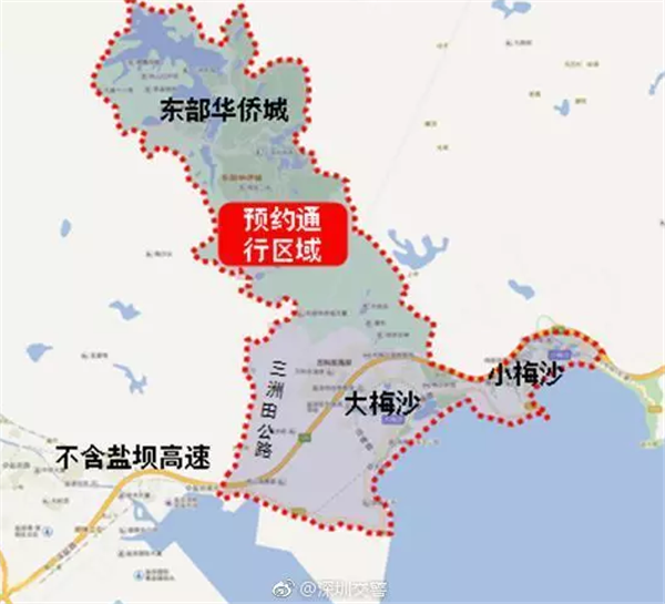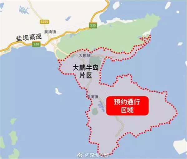 二是大鹏片区。迭福山隧道以南(含迭福山隧道)大鹏新区所有道路。