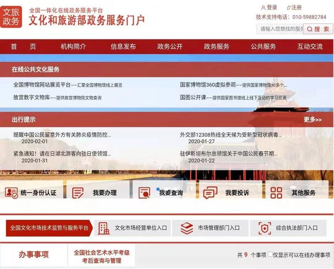 为丰富新型冠状病毒感染的肺炎疫情防控期间人民群众精神文化生活,进一步做好在线政务服务,按照国务院办公厅统一部署,博彩网站 - 亚洲正规博彩网站在国家政务服务平台、部网站政务服务门户上推出“在线公共文化服务”“出行提示”两项专题公共服务。