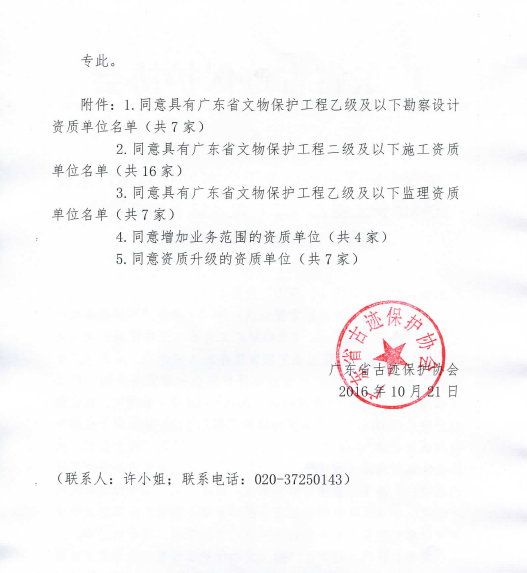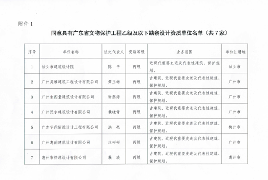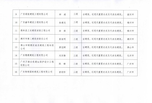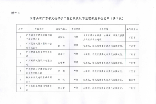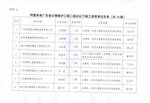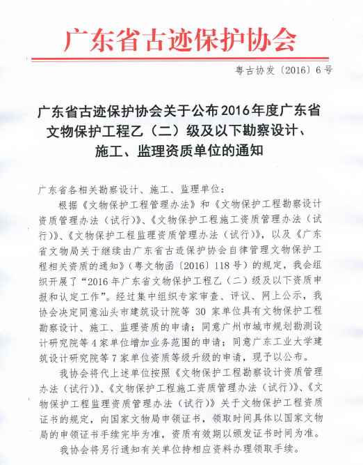 关于公布2016年度广东省文物保护工程乙(二)级以下勘察设计、施工、监理资质单位的通知