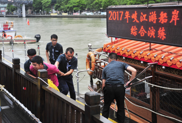 目前,中山市已进入暑期旅游旺季,又正值汛期和台风季节,雷雨、大风等强对流灾害天气频发,极易引发道路交通事故以及山洪、泥石流、坍塌等次生地质灾害。为进一步加强暑期旅游安全工作,防范涉旅重大安全事故发生,确保水上旅游安全,近日,中山市在岐江河上开展了大型的安全演练活动。本次水上安全演练活动受到市旅游局、海事局、港航局大力支持,由中山市中汇集团主办、中山岐江旅游有限公司承办,来自全市旅游企业的代表进行了现场观摩。本次水上安全演练主要有3个科目:人员落水搜救演习、灭火和乘客转移演习、船岸游客疏散及防暴应急演习。
