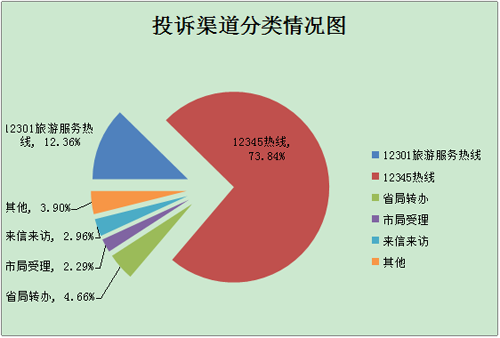 第三季度,全省共接到旅游投诉1552宗,正式受理1181宗,不予受理371宗。已办结1043宗,正在办理138宗,结案率为88.31%。其中,通过各地级市12345政府服务热线接受旅游投诉1082宗,受理872宗,不予受理210宗,已办结794宗;通过“全国旅游投诉举报与案件办理管理系统(12301旅游服务热线)”接受旅游投诉230宗,受理146宗,不予受理84宗,已办结111宗,正在办理35宗;省局转办(包括省局政务网及省质监所转办)63宗,受理55宗,不予受理8宗;市局政务网及局长信箱38宗,受理27宗;受理来信(函)来访投诉51宗,受理35宗,其他部门转办88宗,受理46宗。