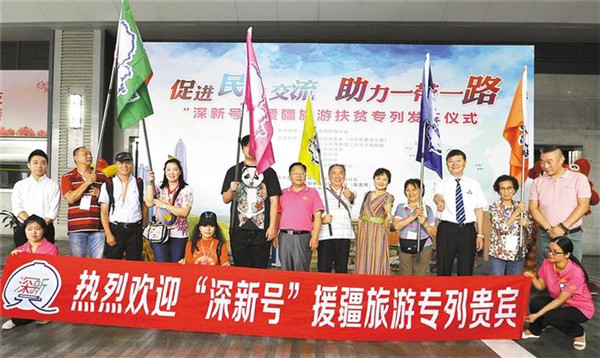 作为2018年度首趟“深新号”援疆旅游扶贫专列,该专列由深圳市经贸信息委(对口支援办公室)、深圳市对口支援新疆工作前方指挥部、深圳市文体旅游局、深圳市旅游协会、喀什地区旅游局和广东铁青国际旅行社有限责任公司主办,深圳市广铁青国际旅行社联合深圳国旅新景界、广东旅游等同业承办。