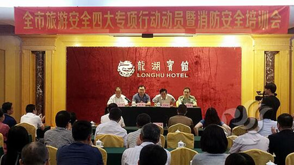 动员会后,由市公安消防局徐宏伟科长为全市旅行社、星级旅游饭店和A级旅游景区进行了消防安全培训,通过面对面有针对性地指导旅游单位从业人员做好安全生产工作,做到送安全生产服务上门,确保“生产必须安全”、“不安全不生产”成为本行业领域的广泛共识和行为自觉。