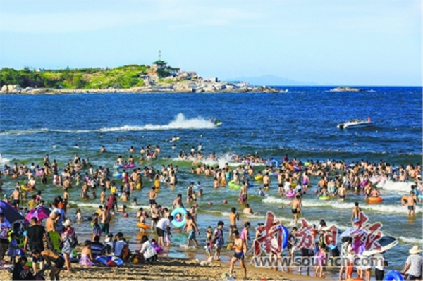 炎炎夏日,各地游客蜂拥至此,在遮浪半岛东西两岸,人们开心地享受着一边波涛汹涌一边风平浪静的独特体验。“很久之前就听说过遮浪奇观,今天慕名而来,果真如传言所说。”来自广州的朱先生携妻儿到此休假,他们拿着手机记录美景并迅速分享。