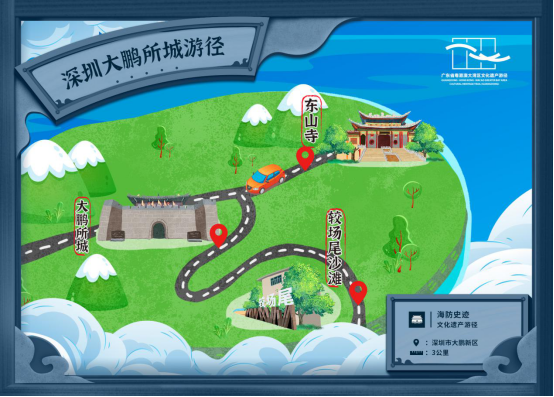游径线路:(较场尾沙滩)—大鹏所城—(东山寺)