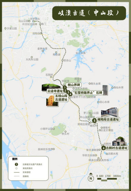 一条浸香古道,一路荆棘丛生,一段不朽传奇。踏上古道,耳中是群英的脚步声,脚下是半部中国近代史,这里就是岐澳古道。岐澳古道不仅是连接中山、珠海和澳门繁荣一时的贸易通道和官道,也是密切内地与港澳地区血肉联系的精神纽带。林则徐禁烟亦曾沿岐澳古道前往澳门。岐澳古道(中山段)北起天字码头,南至古鹤村,沿线串联了五桂山古道、古鹤段古道和雍陌段古道三段主要遗存。