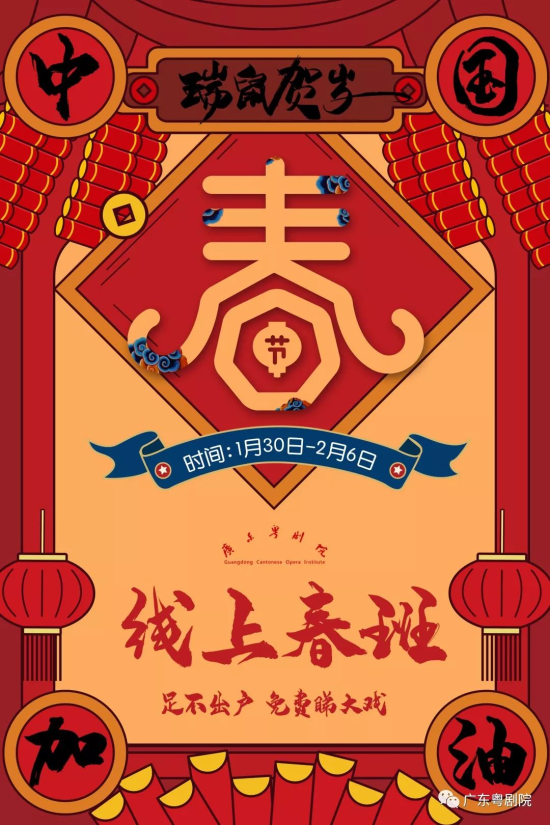 从1月30日--2月6日连续八天,广东粤剧院“线上春班”将在每天15:00准时开场,敬请各位留意。