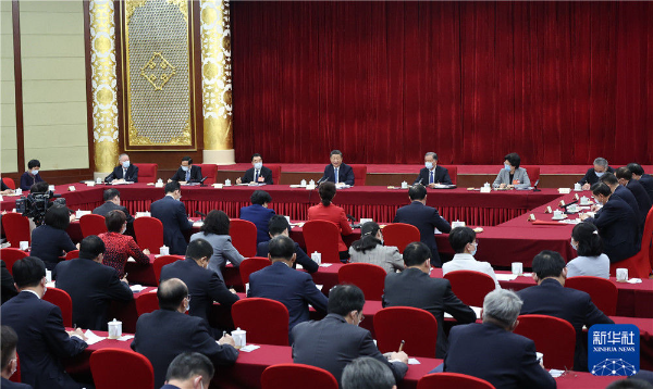 3月6日,中共中央总书记、国家主席、中央军委主席习近平看望参加全国政协十三届五次会议的农业界、社会福利和社会保障界委员,并参加联组会,听取意见和建议。中共中央政治局常委、全国政协主席汪洋参加看望和讨论。新华社记者 鞠鹏 摄